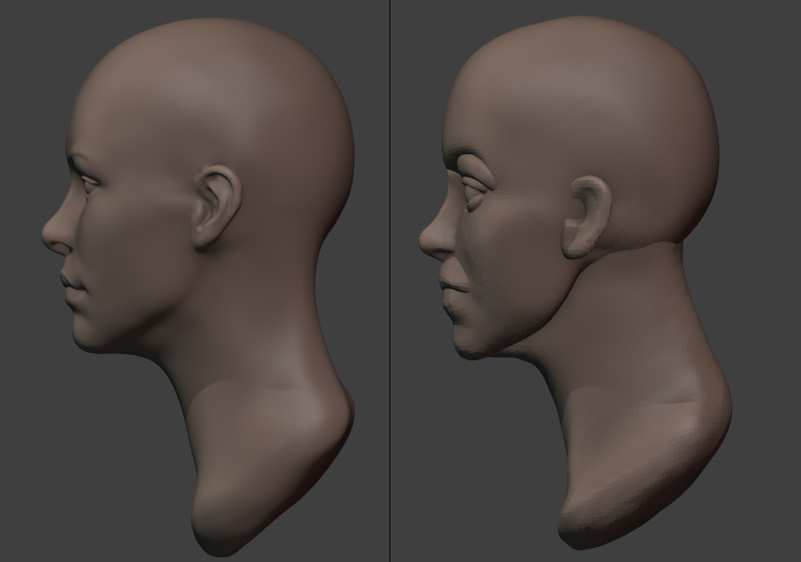 - The cranium still isn’t looking smooth enough, even out its silhouette, paying particular attention to the connection between the back of the neck and the skull.